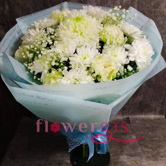 Идельно-белоснежные хризантемки принесут вам массу впечатлений и удовольствие, ведь настолько свежий букет, не каждая компания сможет доставить, но благодаря нашем нашему партнерному соглашению с заводом по выращиванию хризантем и роз - мы себе это позволить можем